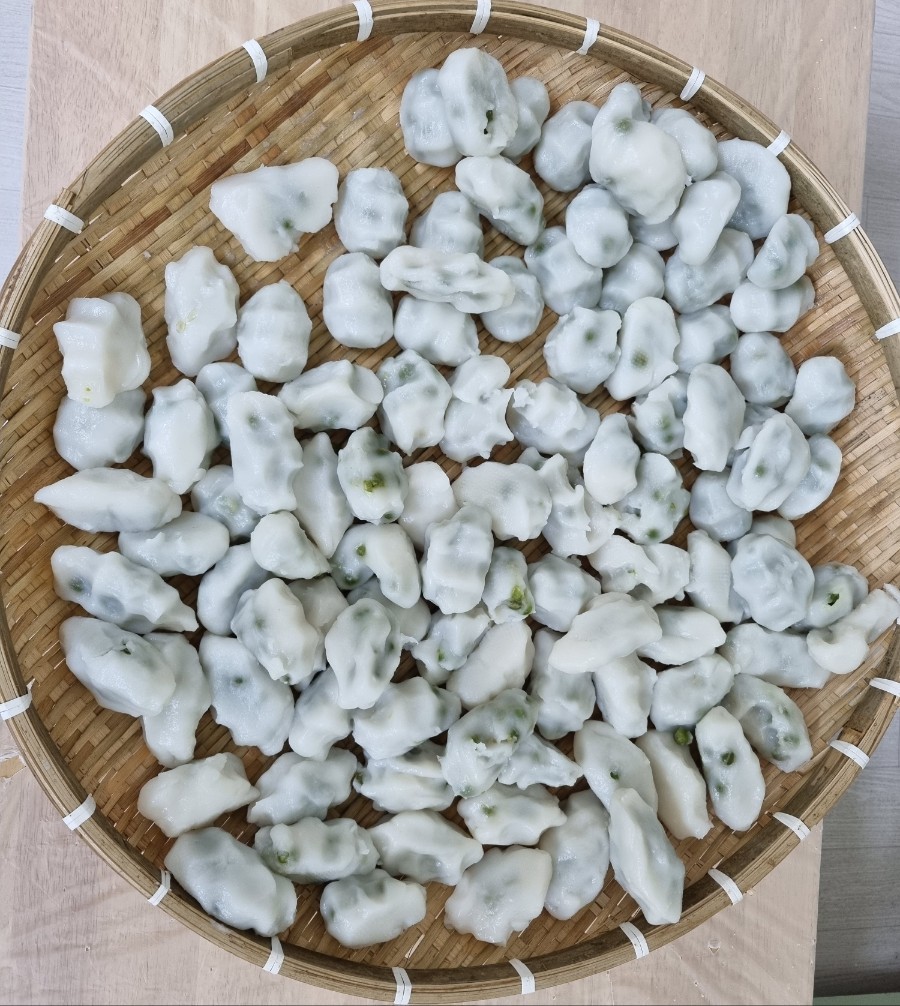 동글동글한 반죽에 구멍을 내서 콩 속을 넣어 조물조물 만지면 송편빚기 끝.. 쉽죠~~ ㅎㅎ