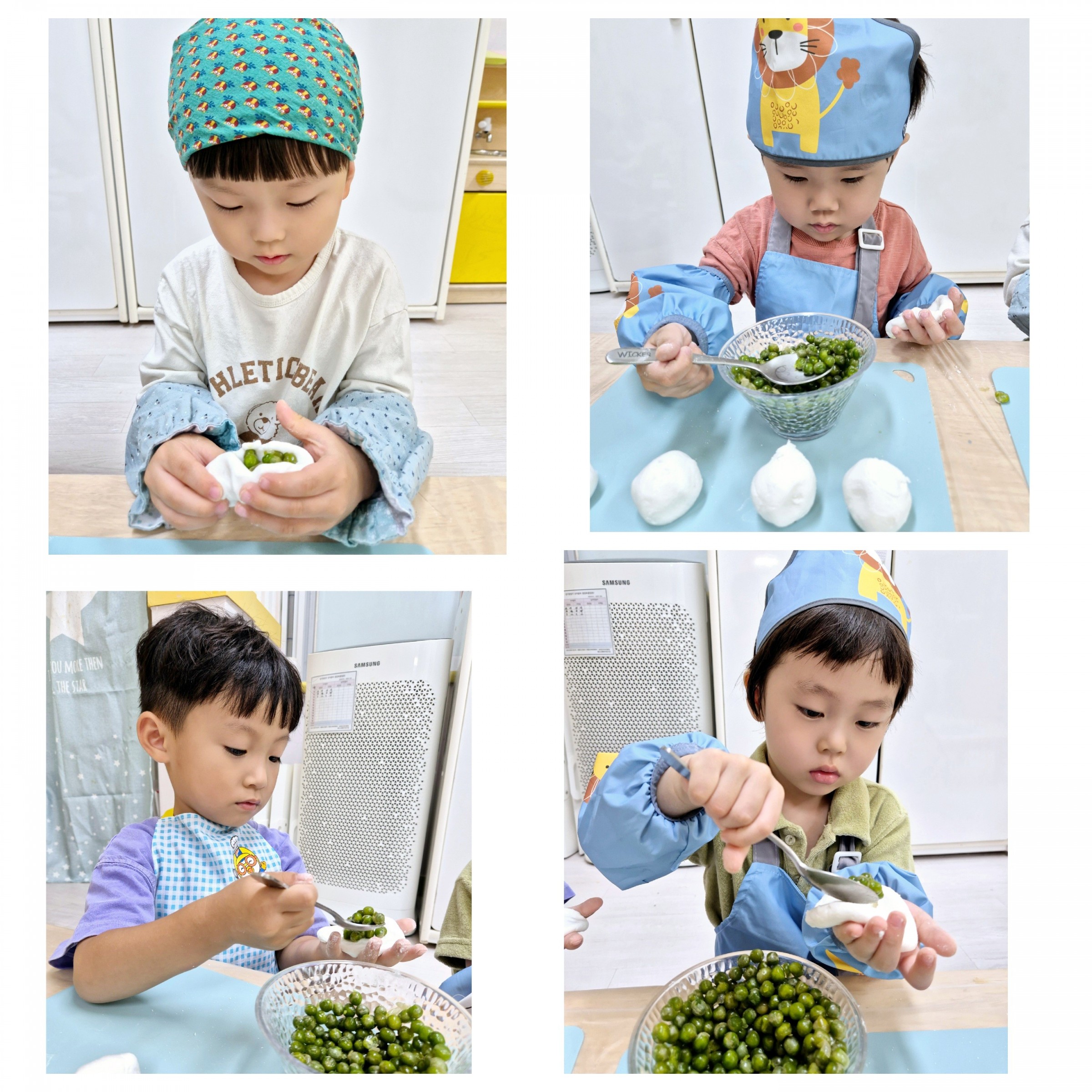 꽃잎반, 잎새반 형님반은 어린이집에서 송편빚기를 여러번 경험해서 조물조물 송편을 잘 빚었어요.
