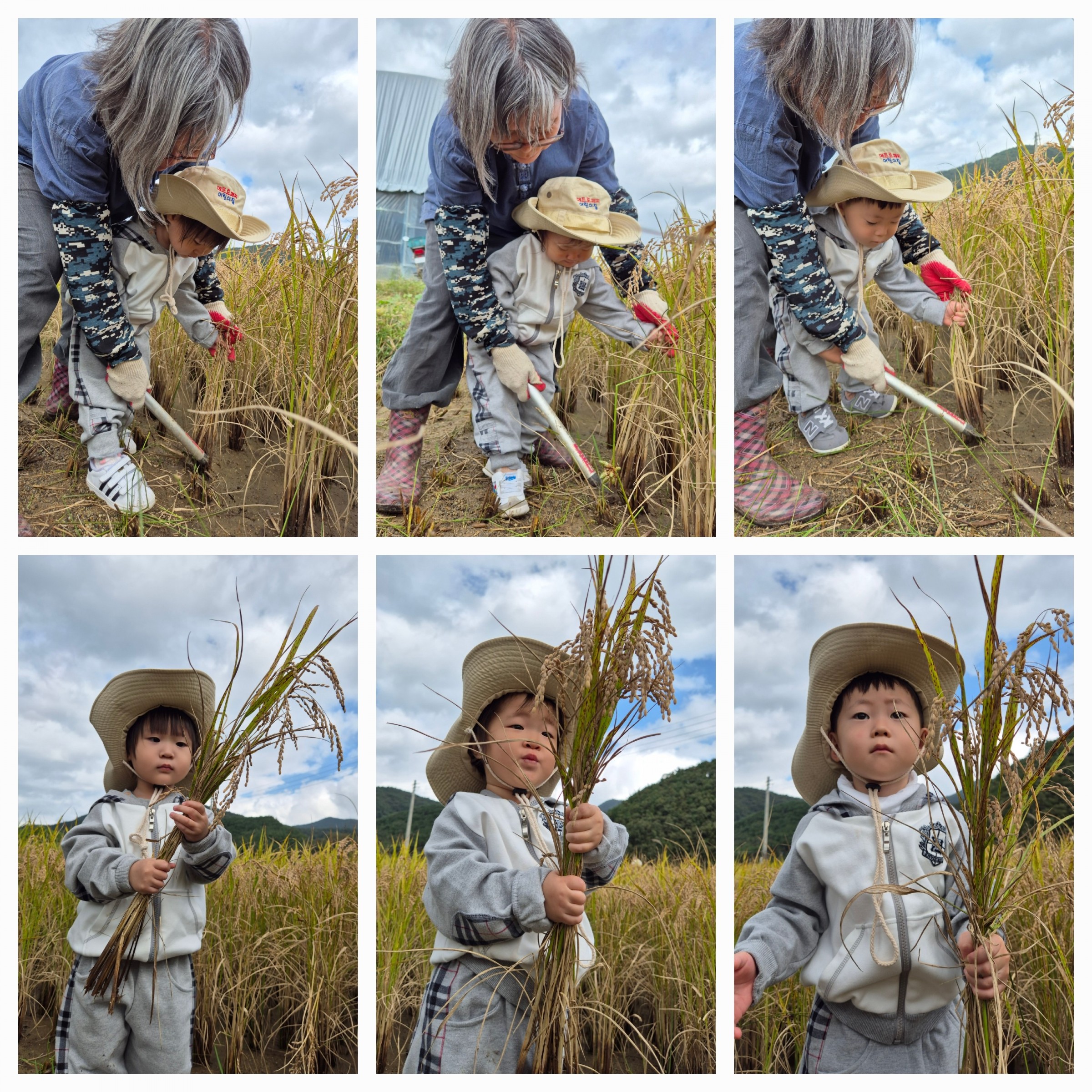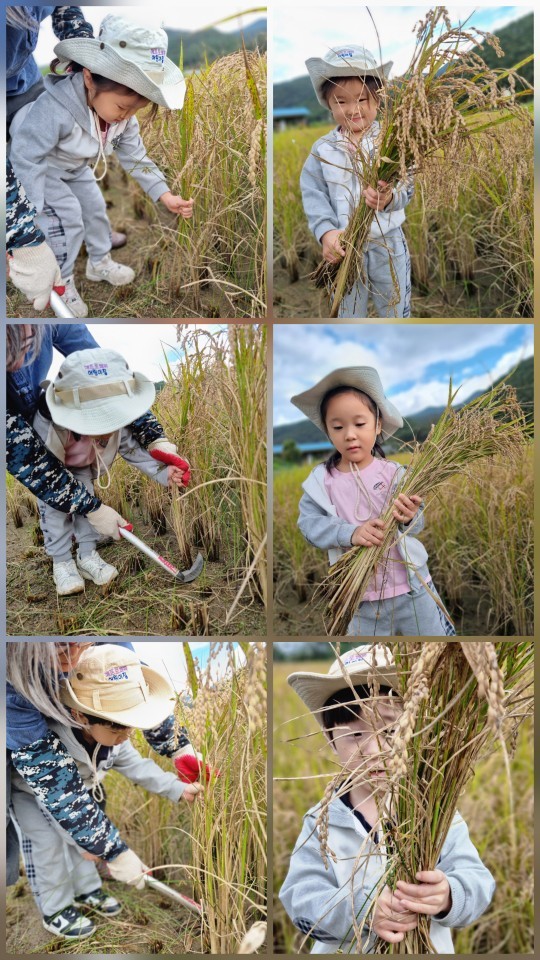 쓱쓱 싹싹 벼베기를 참 잘했어요. ㅎㅎ 동생반도 열심히 벼베기를 참 잘했어요. ㅎㅎ
