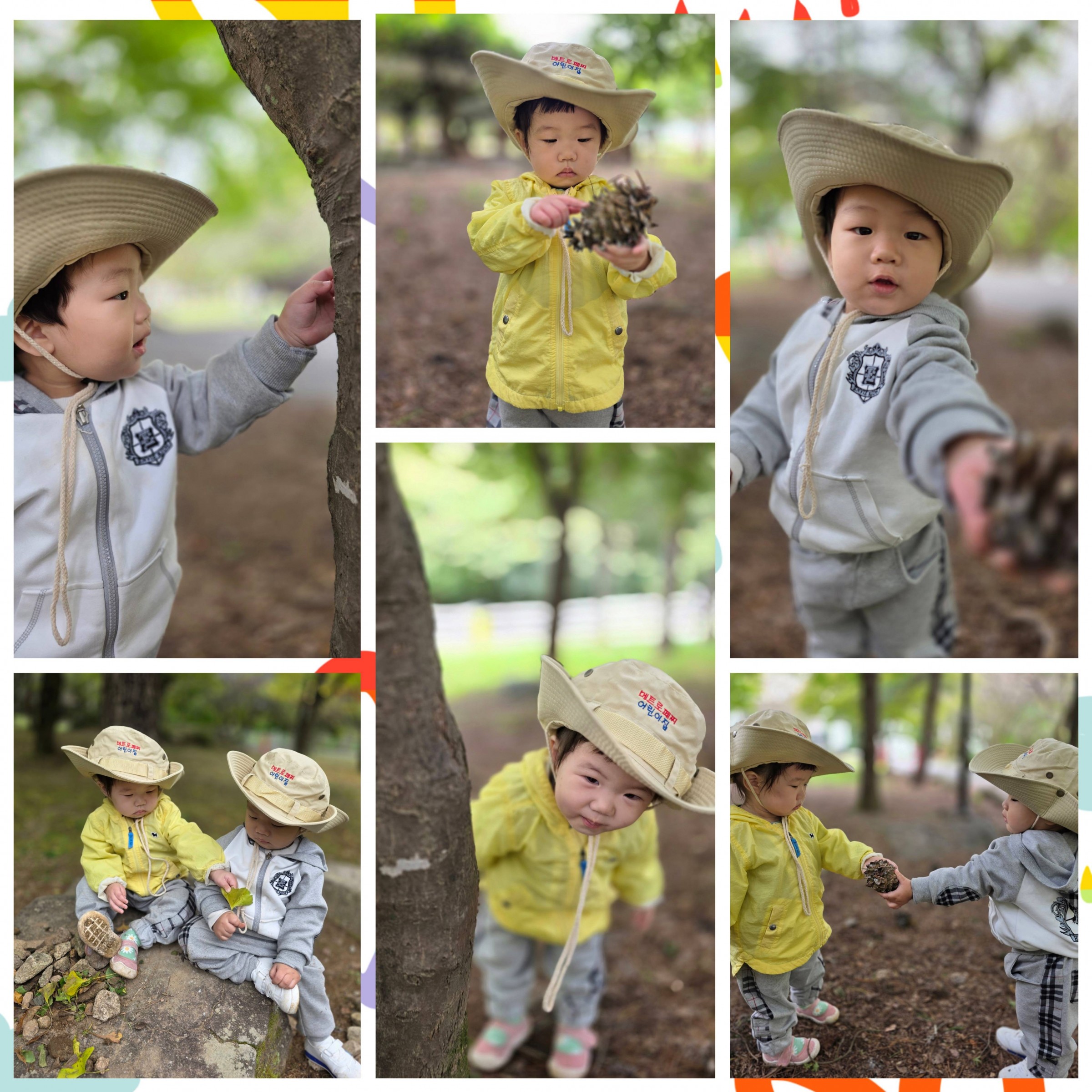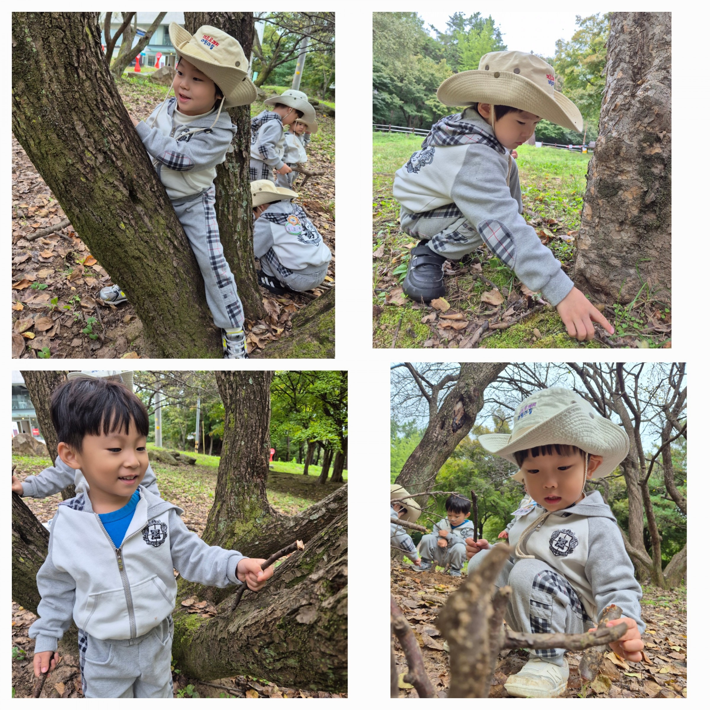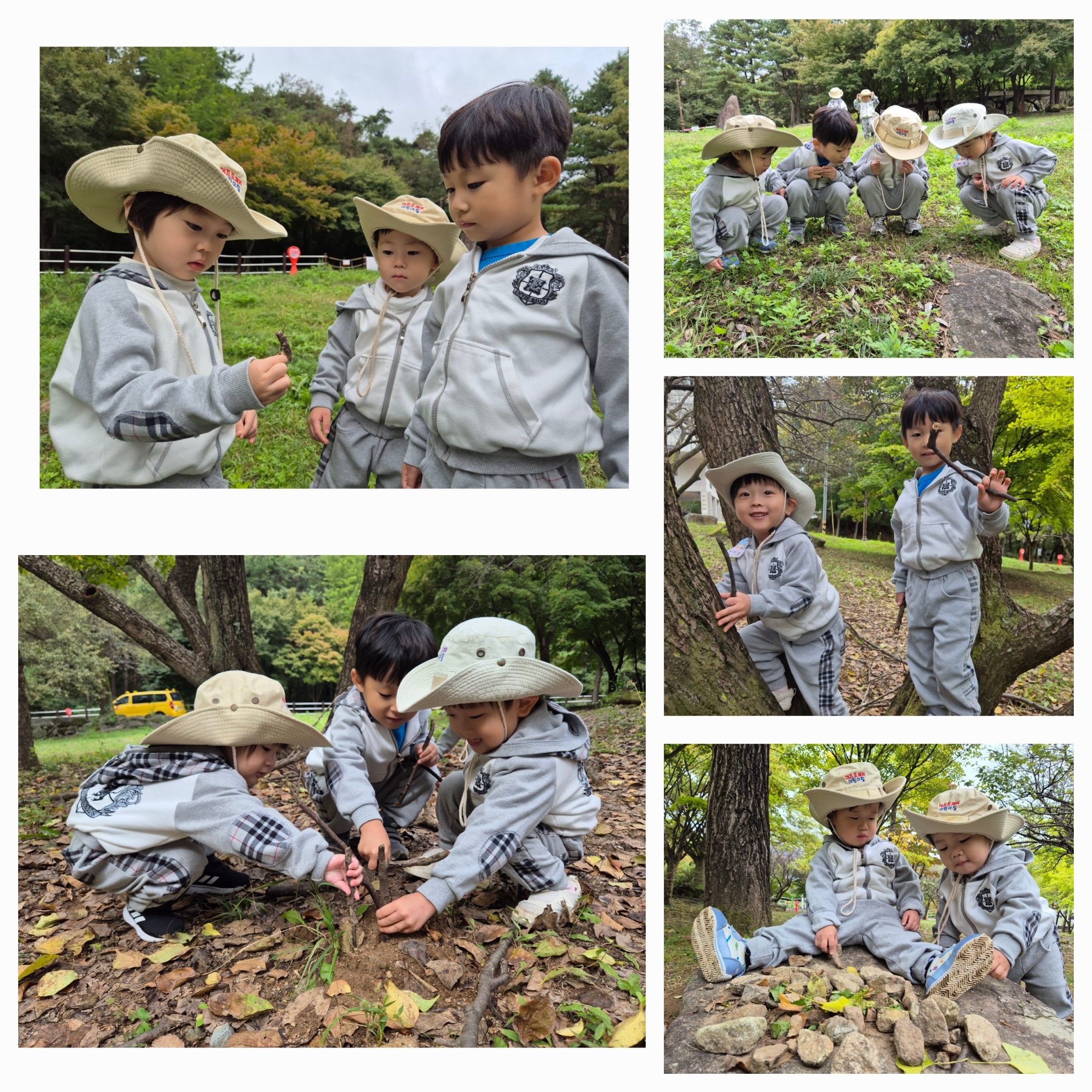 바위 위에서 ‘하나, 둘, 셋!’ 뛰어내리기 놀이를 하기도 하고, 나무를 타기도하고 나무에 올라 코알라처럼 꼭 매달리기도 하며 상상 놀이를 펼쳤답니다🌳🐨