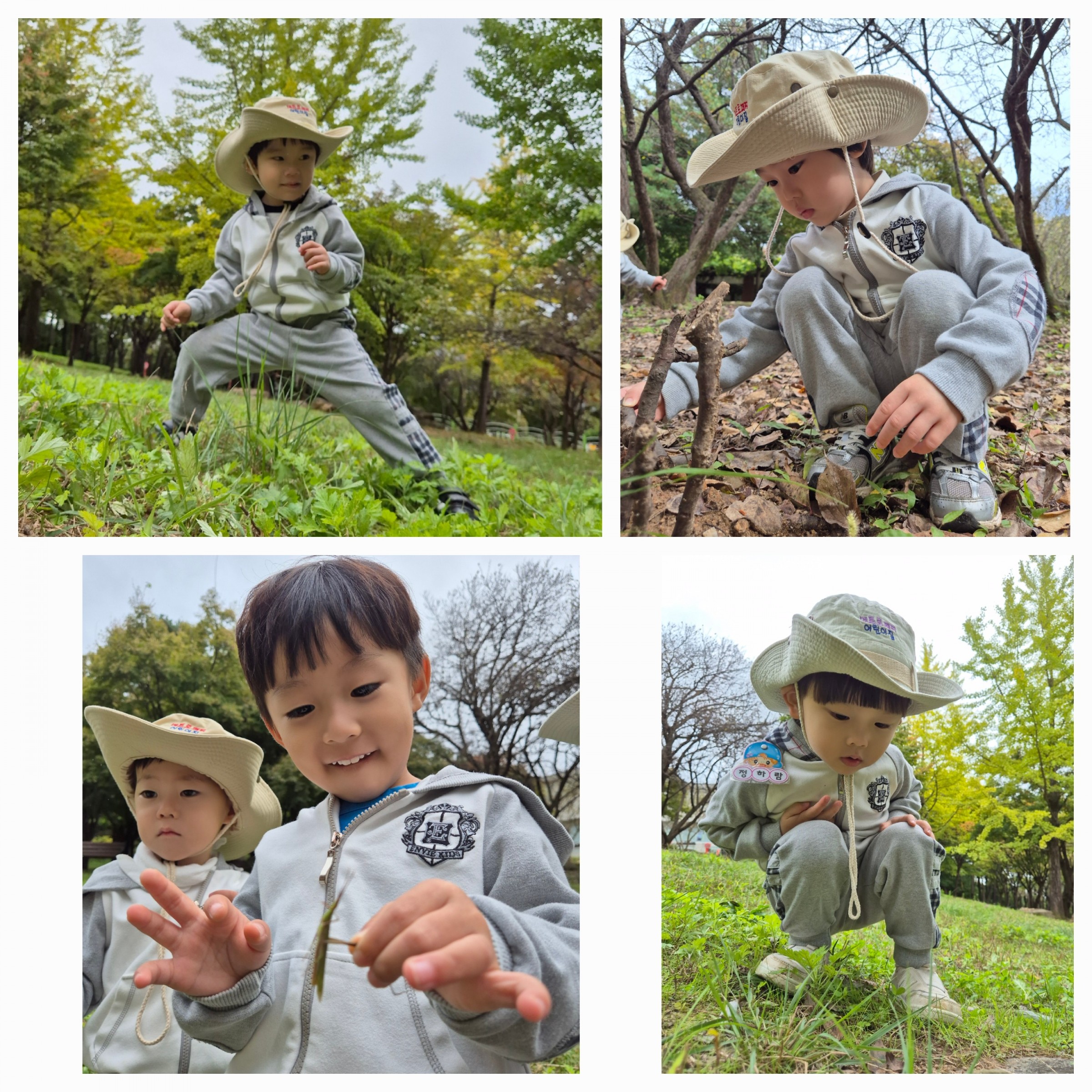 넓은 숲 속에서 친구들은 자유롭게 몸을 움직이며 놀이를 찾았어요.