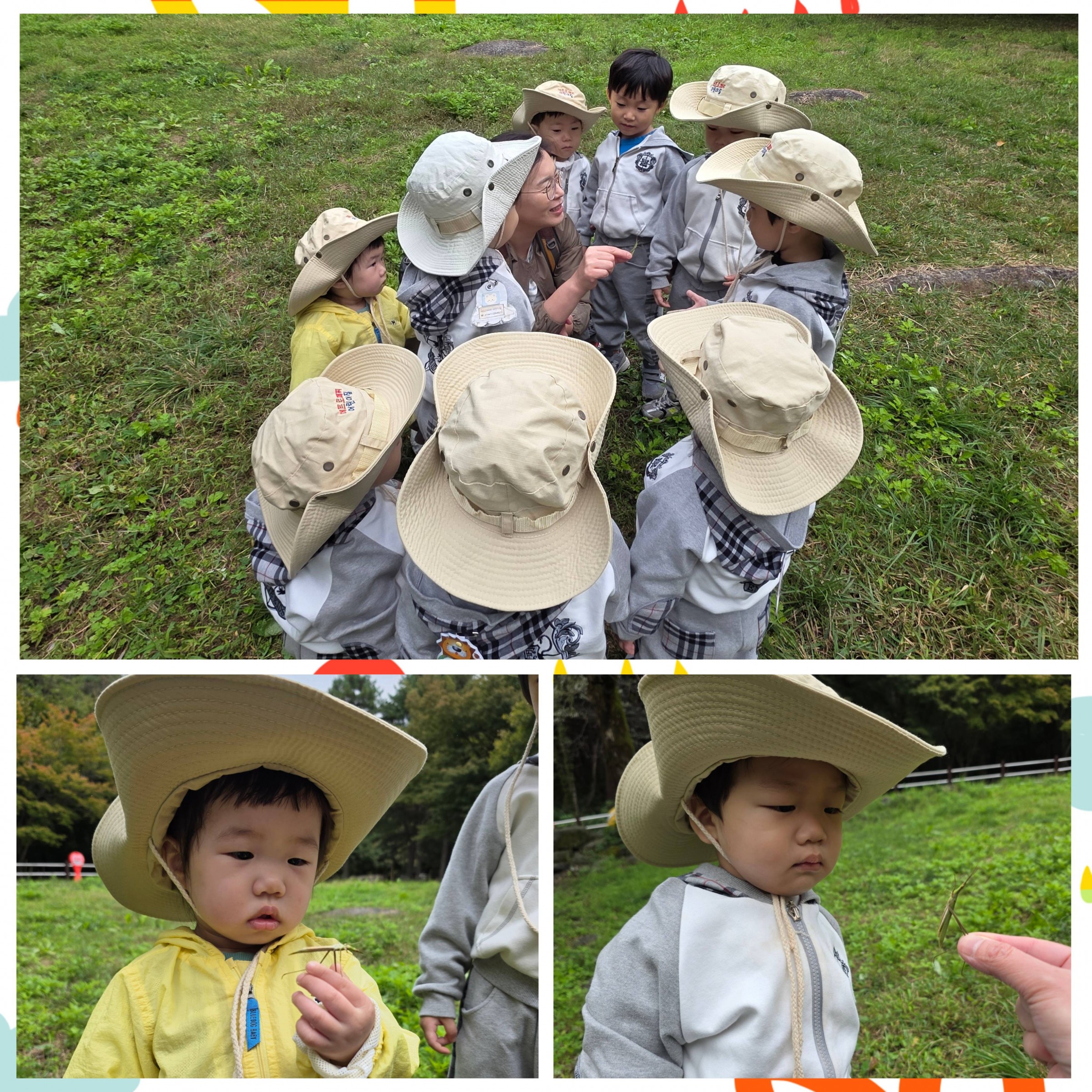 친구들은 곤충을 가까이에서 살펴보며 "다리가 많아~" " 더듬이도 있어~’ 하기도 하고 방아깨비,메뚜기를 비교하며 호기심 가득한 눈빛으로 탐색했어요👀🐛