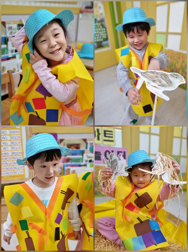 형님반 허수아비들은 동생반 참새들을 쫓으며 벼를 괴롭히면 농부님들이 속상하다고 말해 주었어요. ㅎㅎ