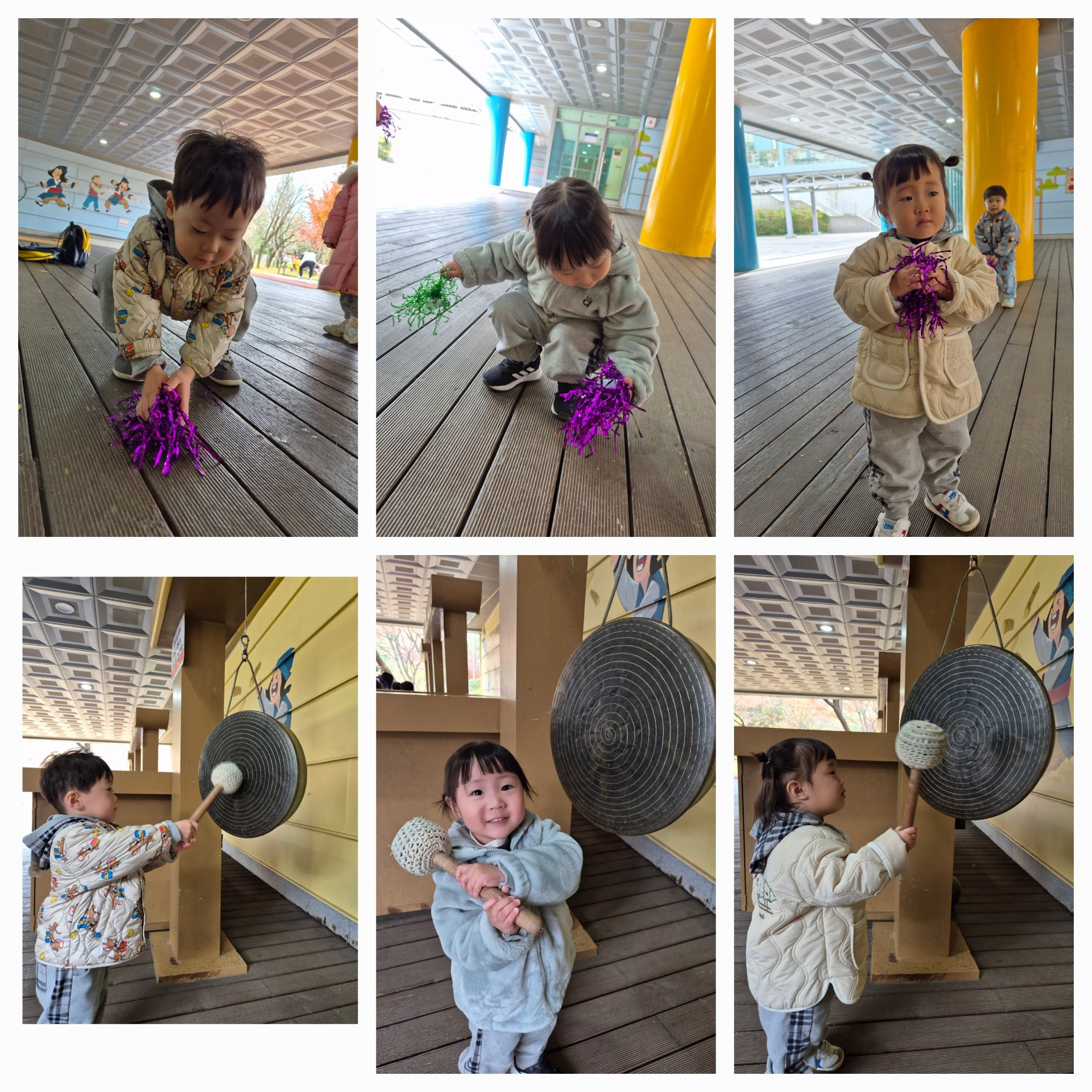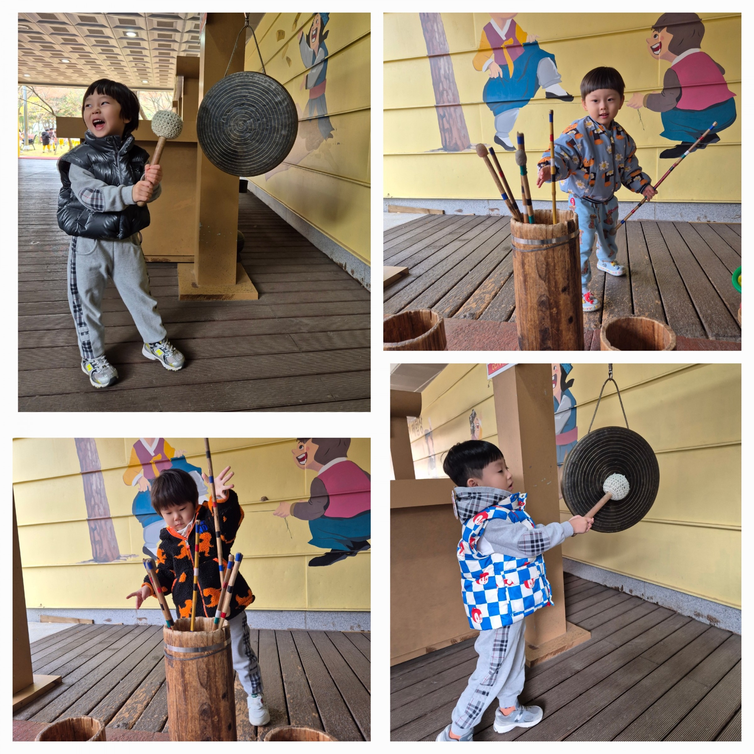 전시실을 다 둘러 보고 전통놀이 체험장에서 징 체험하기, 투호 던지기, 제기 차기 등