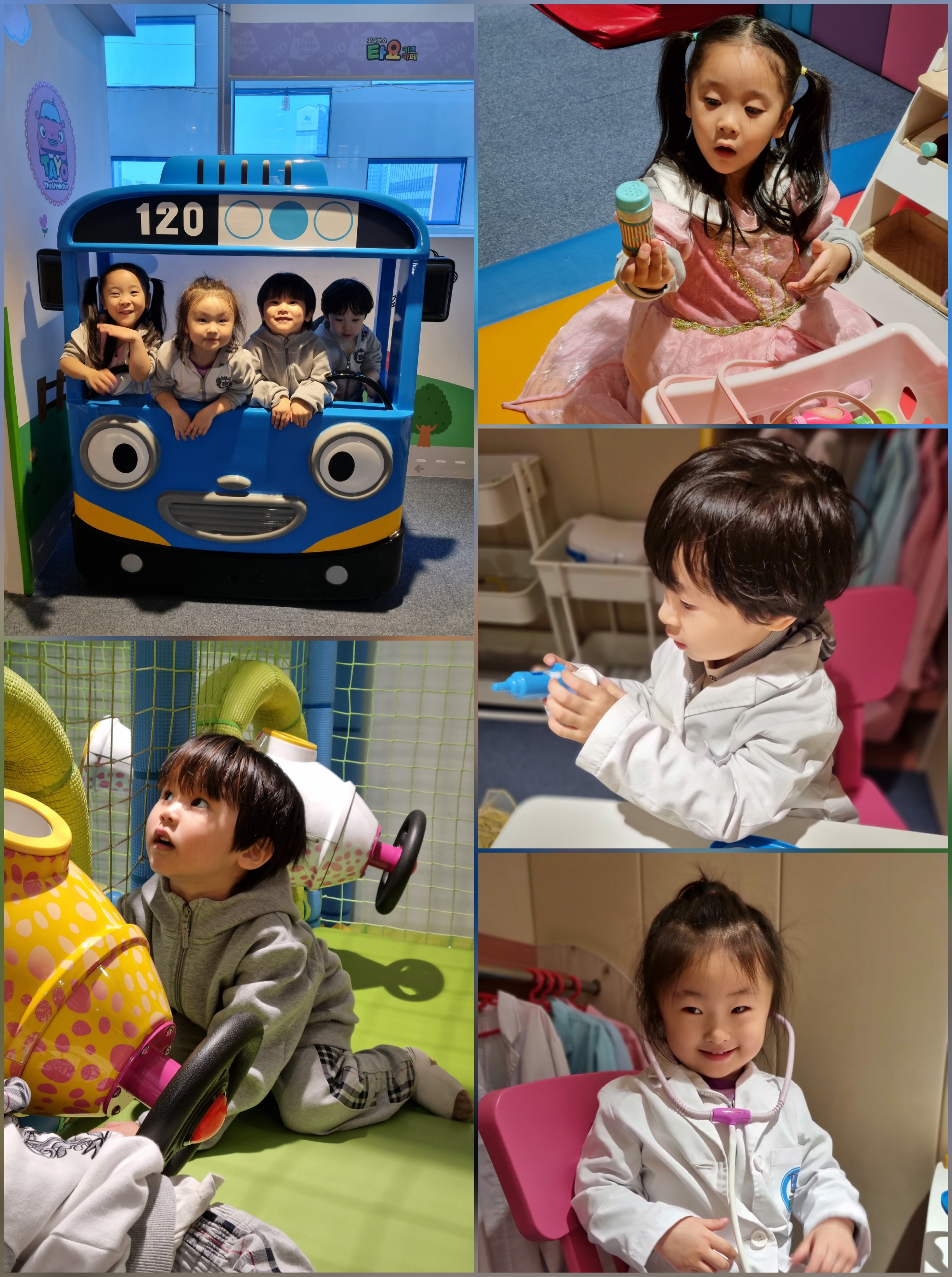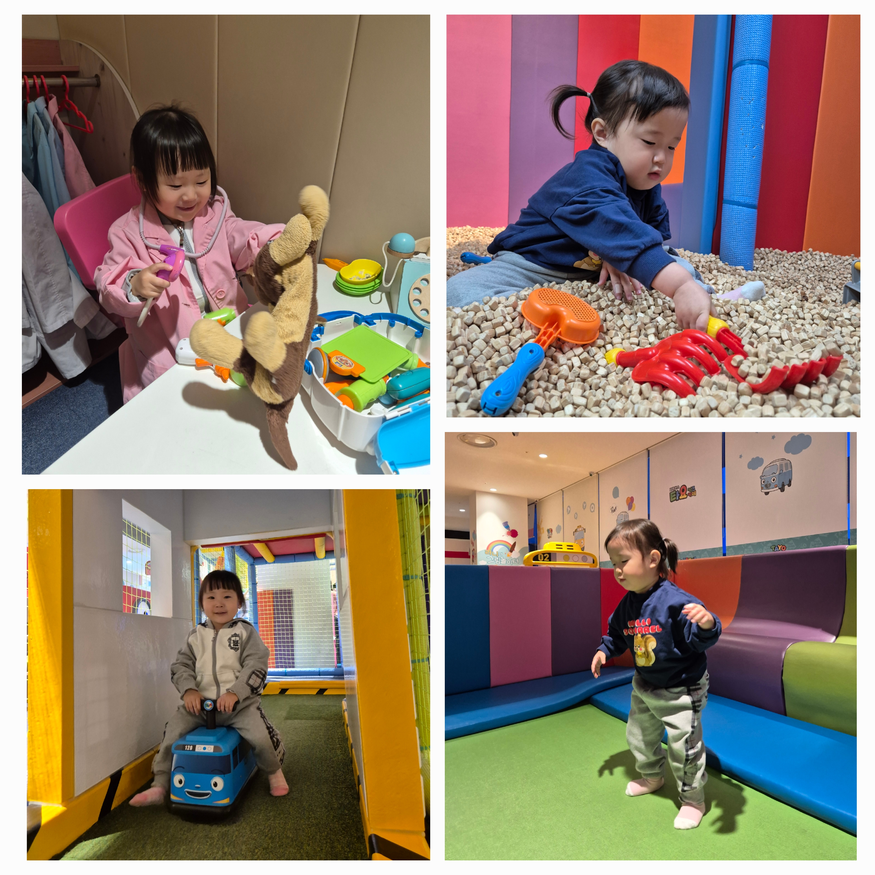 타요 키즈 카페에 도착해서 선생님에게 안전에 대한 이야기를 듣고 놀이를 시작 했어요.