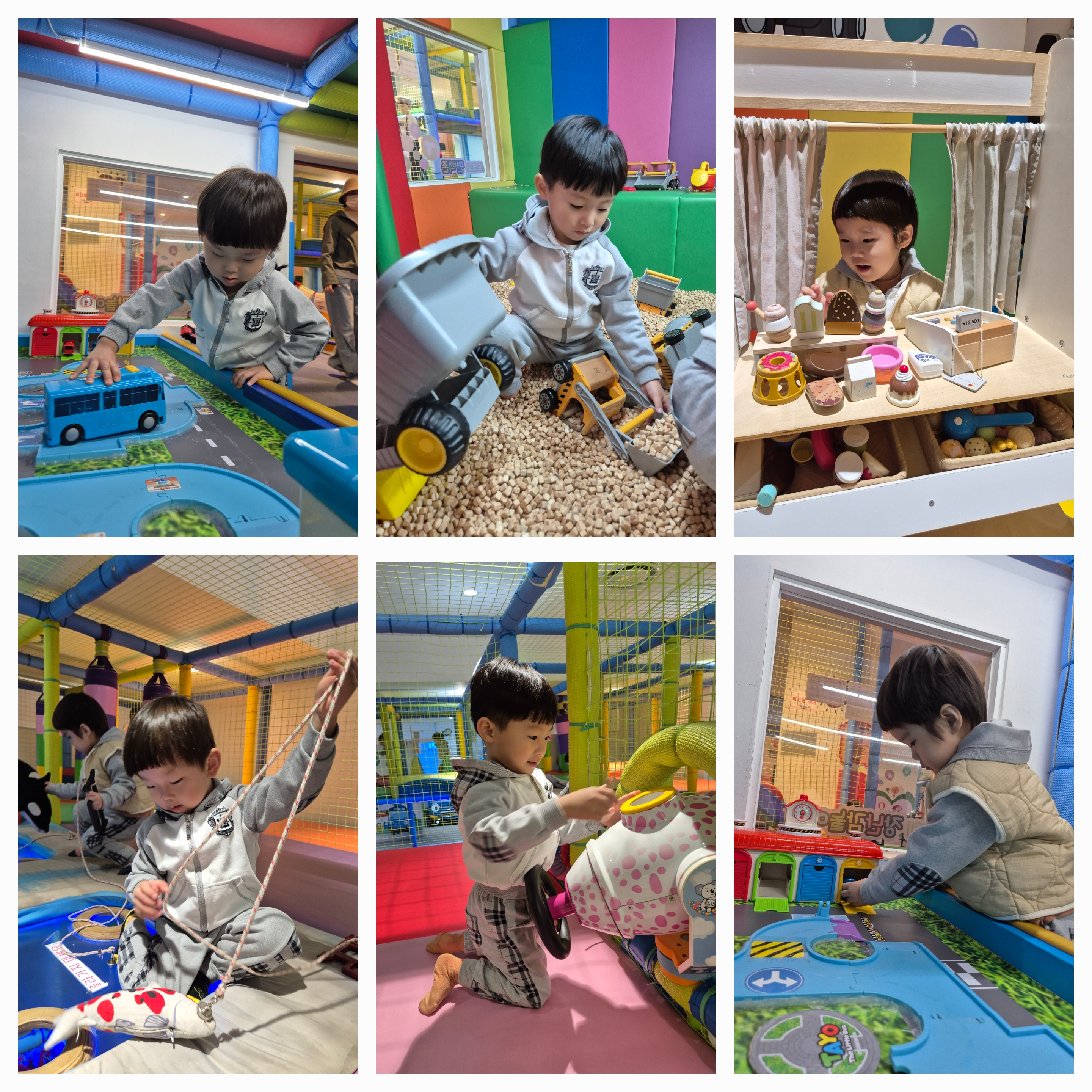 "선생님 , 나 좀 보세요. 높이 높이 올라 갈 수 있어요" 이야기 하며 신나게 뛰고 높이 점프도 하며 놀았어요. 볼대포를 손으로도 쏘고 발( ~ ㅎㅎ)로도 쏘며 악마잡기 놀이를 했어요. "이제는 물고기 잡기를 해 볼까?" 하며 남자친구은 물고기 잡기에 집중하며 놀았어요. 물고기가 잘 잡히지 않아 속상해 했지만 한마리 잡을 때는 "야~~물고기 잡았다 " 아주 아주 신나하며 낚시 놀이에 푹 ~~~빠져 물고기 잡기를 했어요. 캠핑죤에 가서 음식 만들기 , 시장 보기 놀이도 하고 병원죤에 가서 병원 놀이도 리얼(?)하게 하며 재미있게 놀았어요.