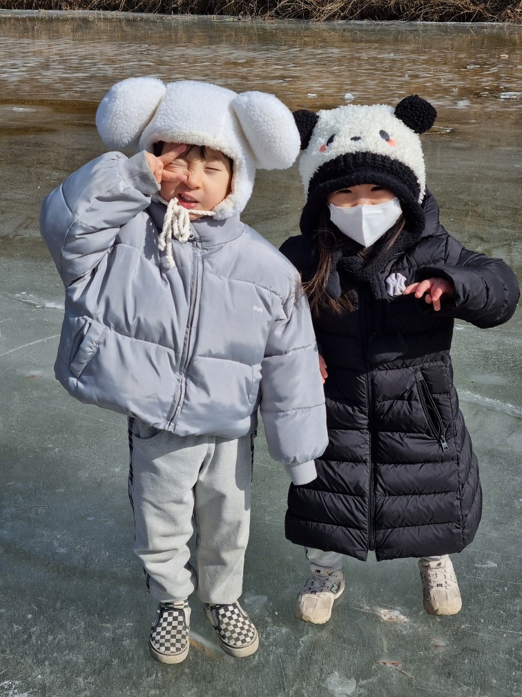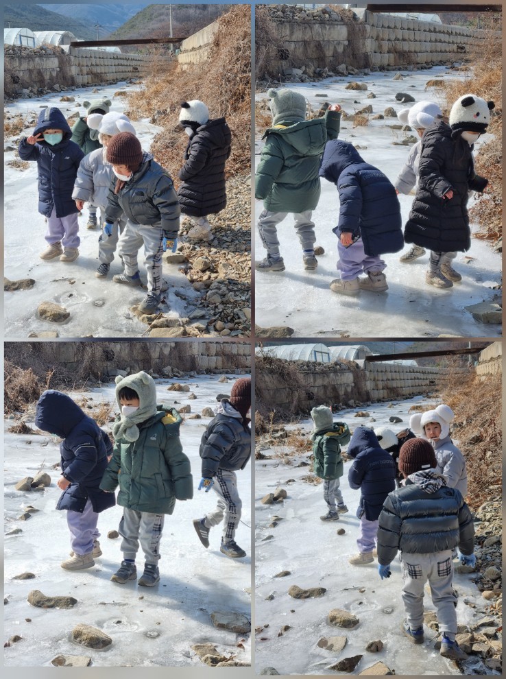 매곡리 선생님꺼서 "매곡리 강이 꽁꽁 얼었는데 얼음 보러 갈까요?" 말씀해 주셨어요.