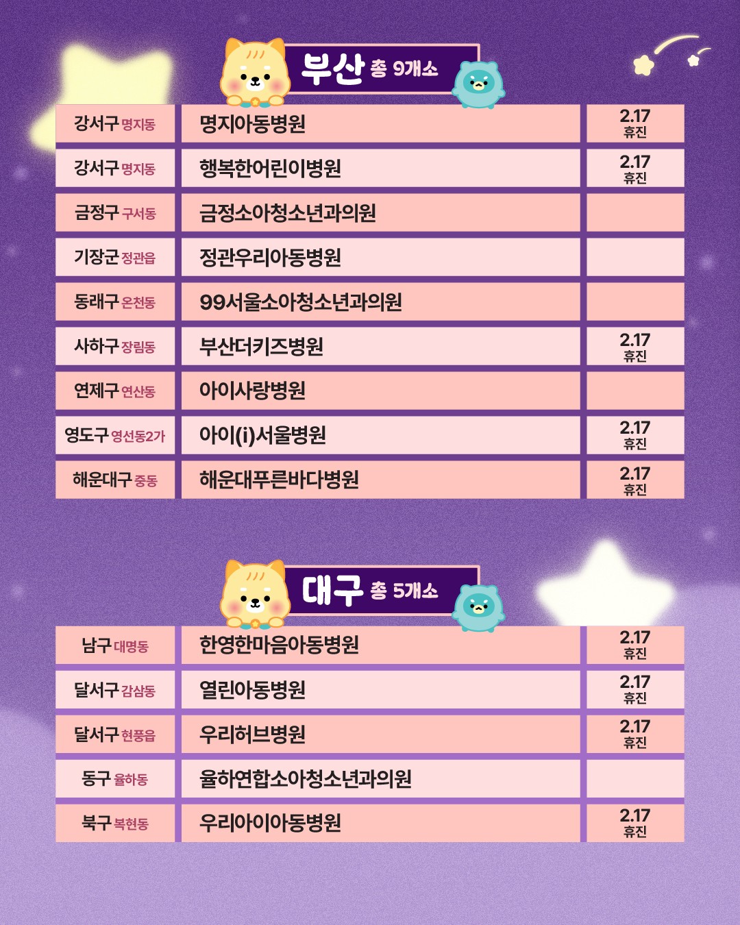 설 연휴 달빛 어린이병원 안내