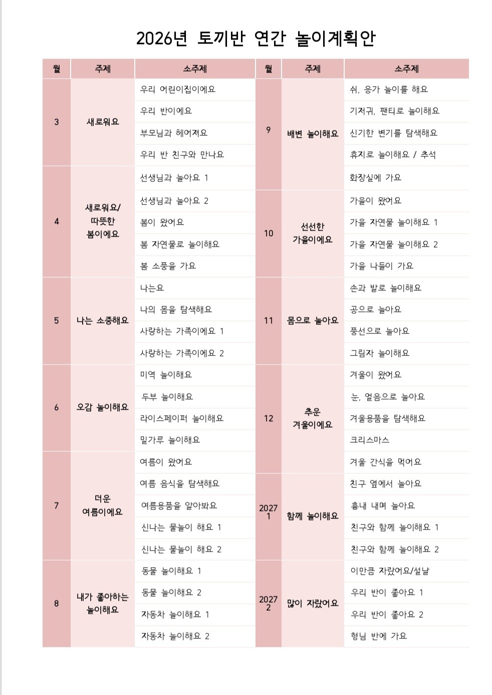 2026년 토끼반 연간 놀이계획안