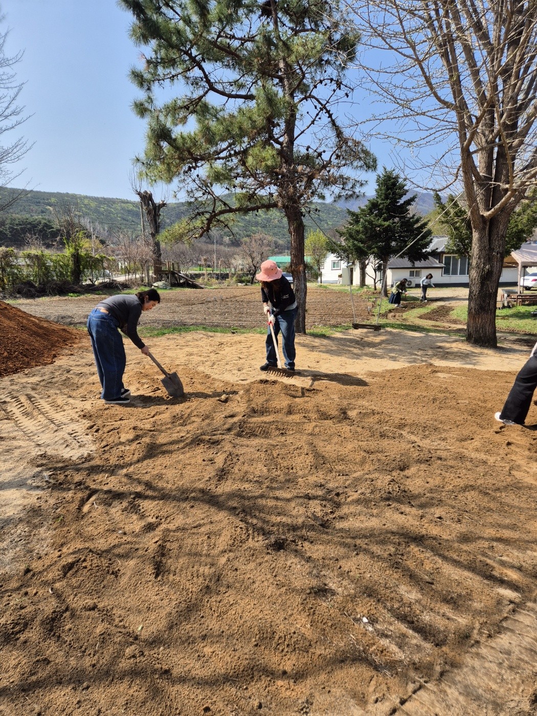 매곡리에는 아이들이 마음껏 만지고 밟을 수 있도록 포슬포슬하고 깨끗한 황토 보충작업을 했습니다. 작년에 부었던 황토가 비비람에 밭으로 흘러가고 아이들의 신발에 묻어 집으로 따라가면서 조금씩 줄어들어 올해는 좀더 넉넉히 부었더니 큼직한 언덕이 생겨났습니다.