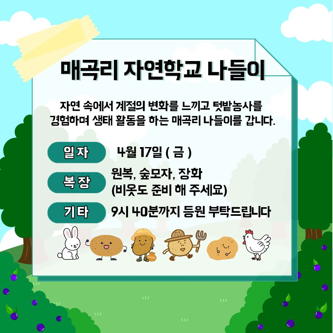 🌿내일은 매곡리 자연 학교 가는 날☘️